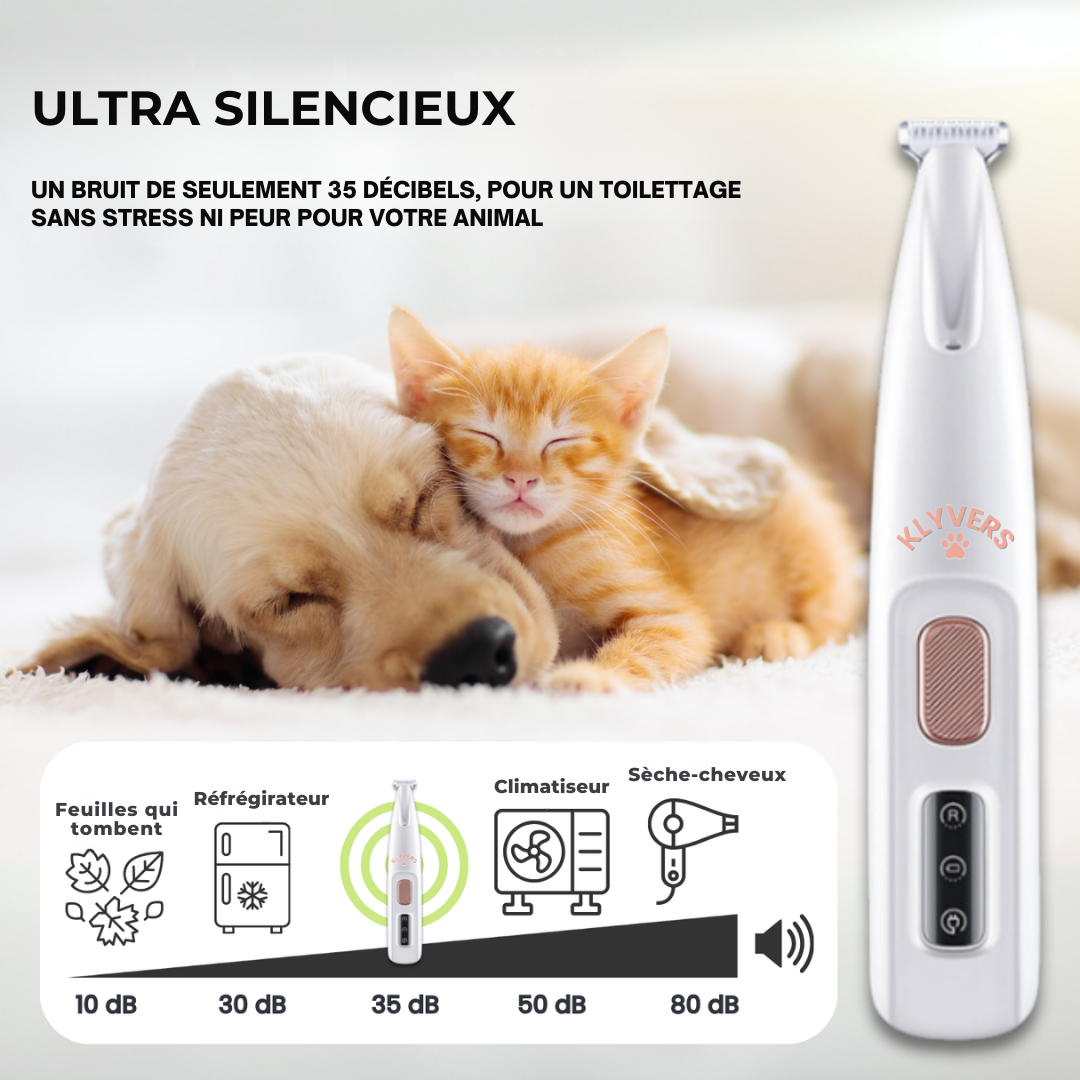 La tondeuse Klyvers a été spécialement développée pour les animaux anxieux. Le moteur ultra silencieux et les vibrations douces en font le choix parfait même pour les chiens les plus sensibles.